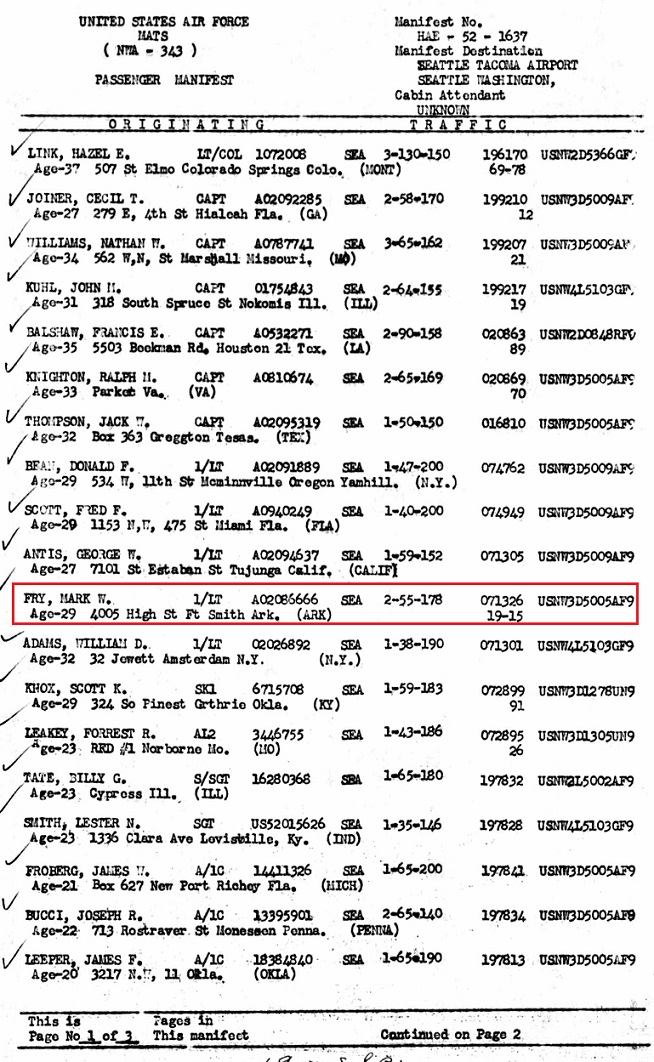 Mark William Fry was born March 29, 1923 in Fort Smith, Sebastian Co., Ar. to