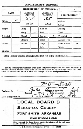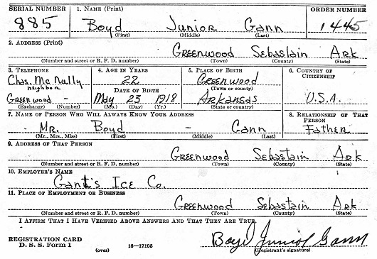 October 16, 1940 Boyd registered for the military draft at Greenwood, Sebastian Co., Ar.