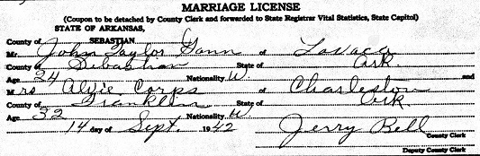 married Alvie Corps of Charleston, Franklin Co., Ar.