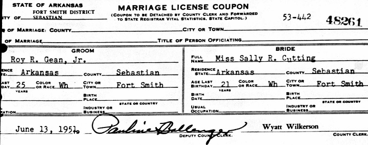 Roy Robert Gean, Jr. was born June 14, 1925 in Fort Smith, Sebastian Co. Ar. to