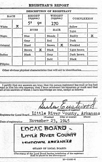 River Co., Ar. according to the information stamped on his draft card. This