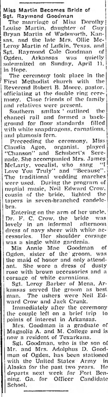 Adolphus D. & Donna Fletcher Goodman. On April 10, 1943 he