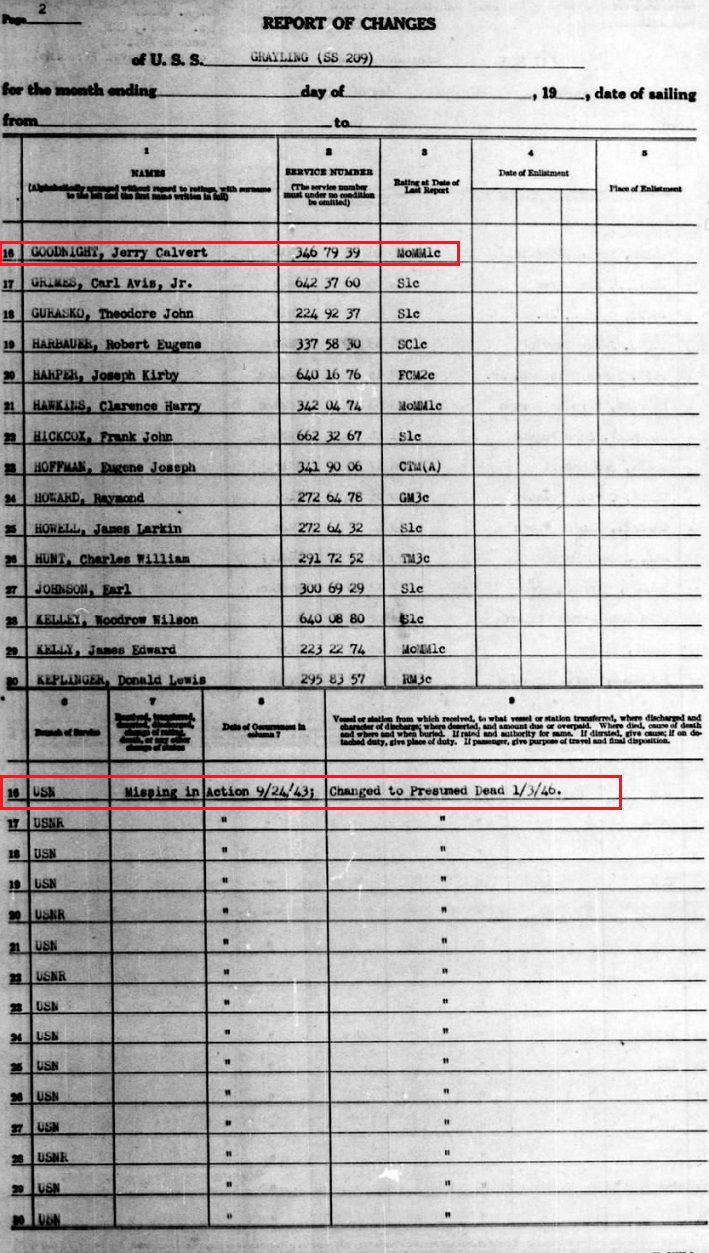 Navy Petty Officer First Class Goodnight was reported missing and ultimately declared