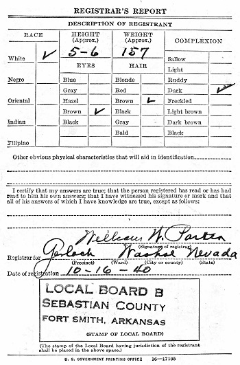 he was born there. The stamp on his card is from Board B in Sebastian Co., Ar.
