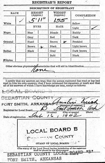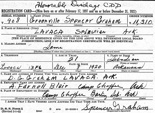 February 16, 1942 Greenville registered for the military draft at Fort Smitn,
