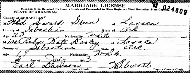 July 3, 1933 Ned married Reba K. Dooley in Lavaca, Sebastian Co., Ar.
