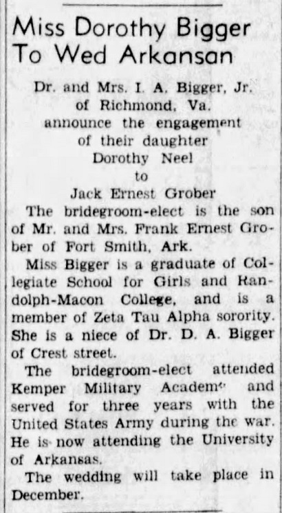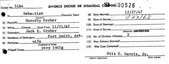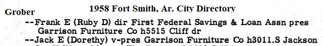Jack Earnest Grober was born 28, 1923 at Fort Smith, Sebastian Co., Ar. to