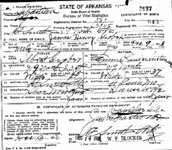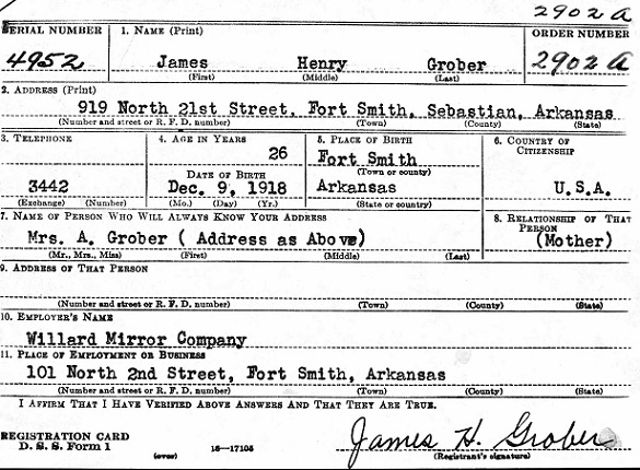 James Henry Grober was born December 9, 1918 in Fort Smith, Sebastian Co.,