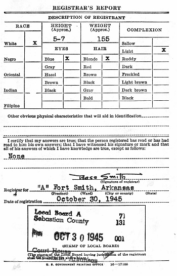 On October 30, 1945 James again filed his registration papers for the