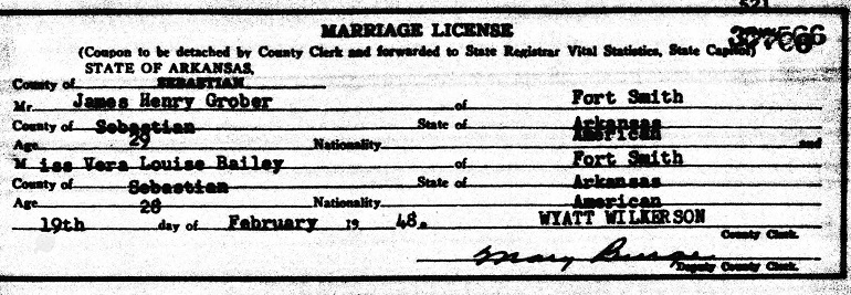 James married Vera Louise Bailey at Fort Smith, Arkansas.