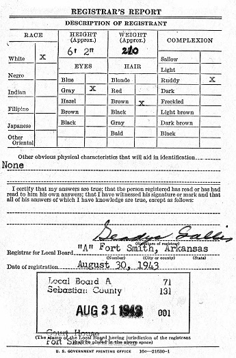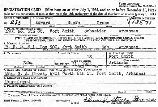 Aug 30, 1943 Edward registered for the military draft in Fort Smith,, Ar.