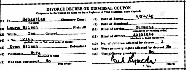 divorced on April 20, 1942 in Sebastian Co., Ar. They are listed in the