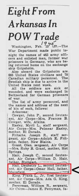 2nd Lt. Hall was shot down and captured by German forces and held as a POW for