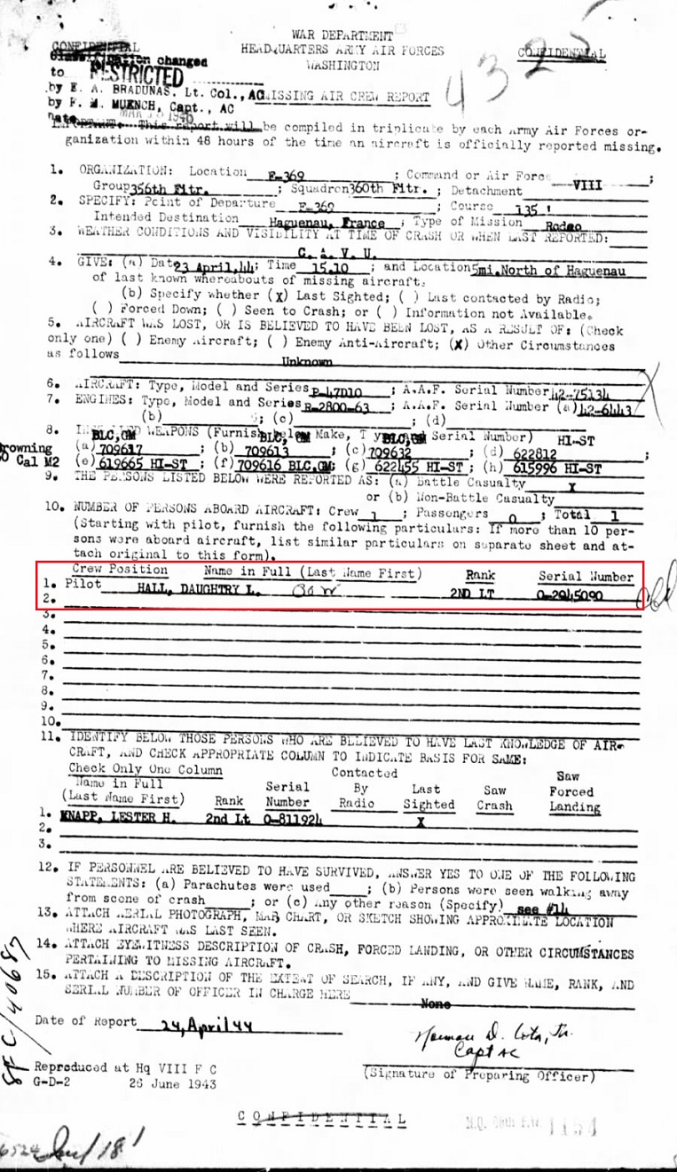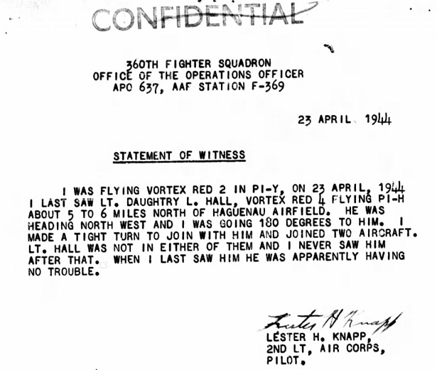 Much of the detail of 2nd Lt. Hall's experiences is below on his obit.