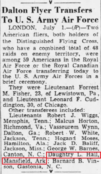 Daughtry Hall first flew for the British Royal Air Force in 1941-1942.