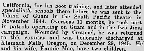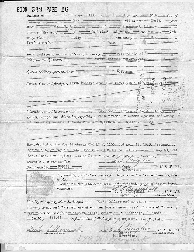 for wounds received on Iwo Jima during the Pacific Campaign. He served till December 29. 1945.