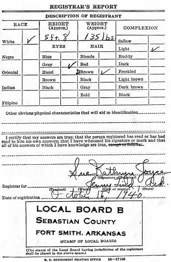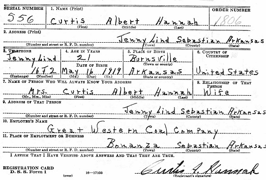 October 16, 1940 Curtis registered for the military draft at Jenny Lind, Sebastian Co., Ar.