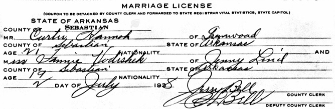 July 2, 1938 in Sebastian, Arkansas, Curtis married Frances Mae Vodishek.