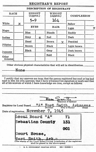 James registered for the military draft November 7, 1945 at the court house in Fort Smith,