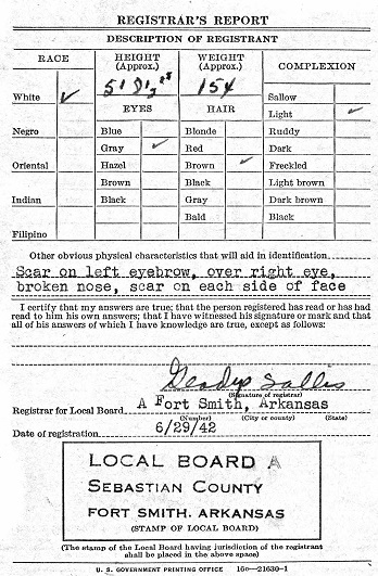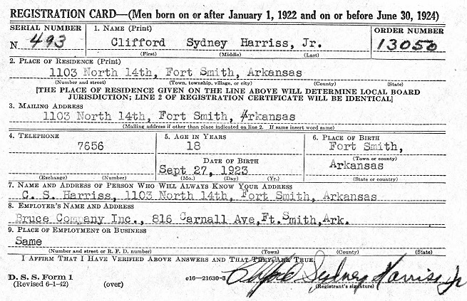 June 29, 1942 Clifford registered for the military draft at Ft. Smith, Sebastian co., Ar.