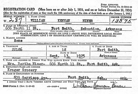 in Fort Smith, Ar. William filled his draft card out when he was but 15 years old in Fort Smith,