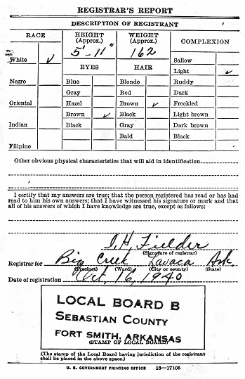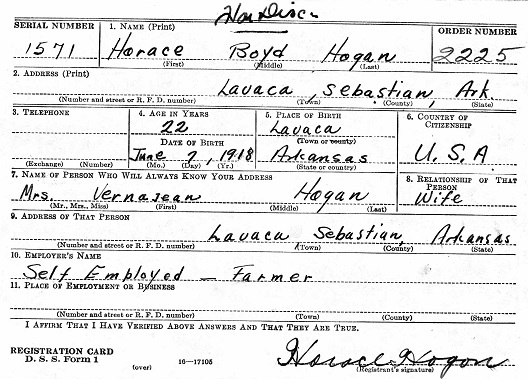 October 16, 1940 Horace registered for the military draft at Lavaca, Ar. He was