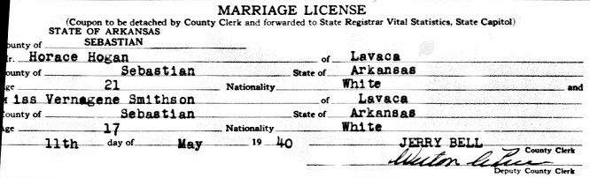 Bernice. May 11, 1940 Horace married Vernagene Smithson in Lavaca,