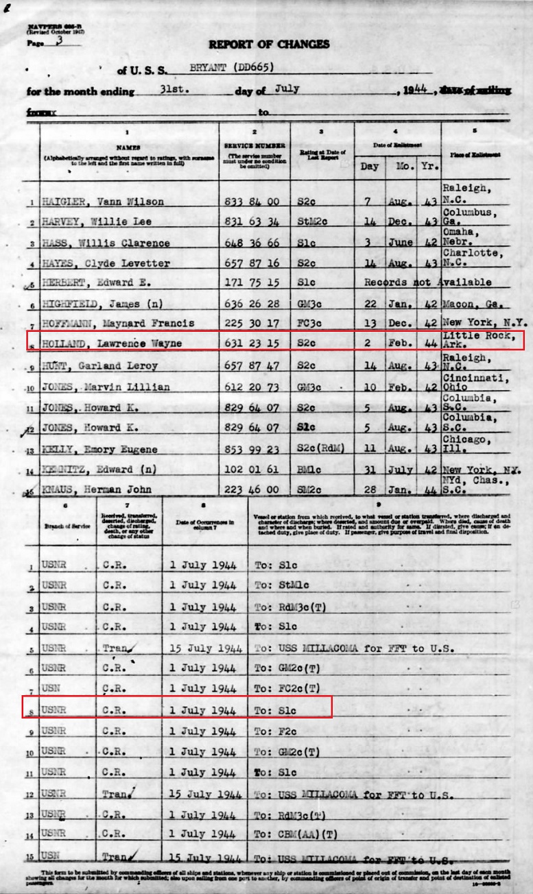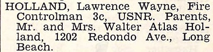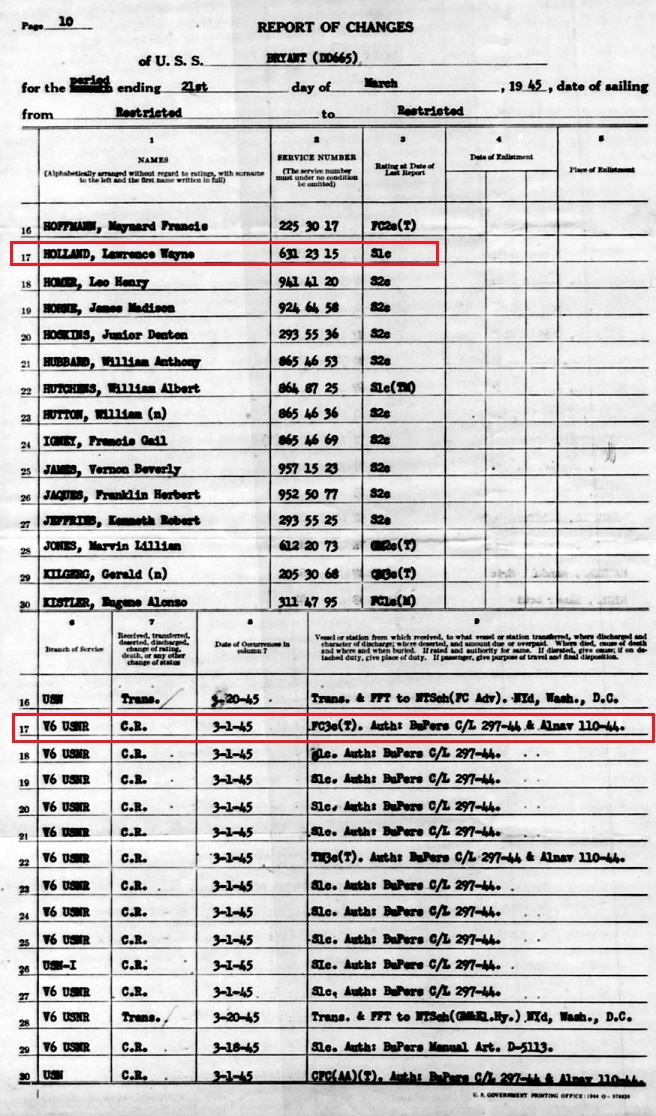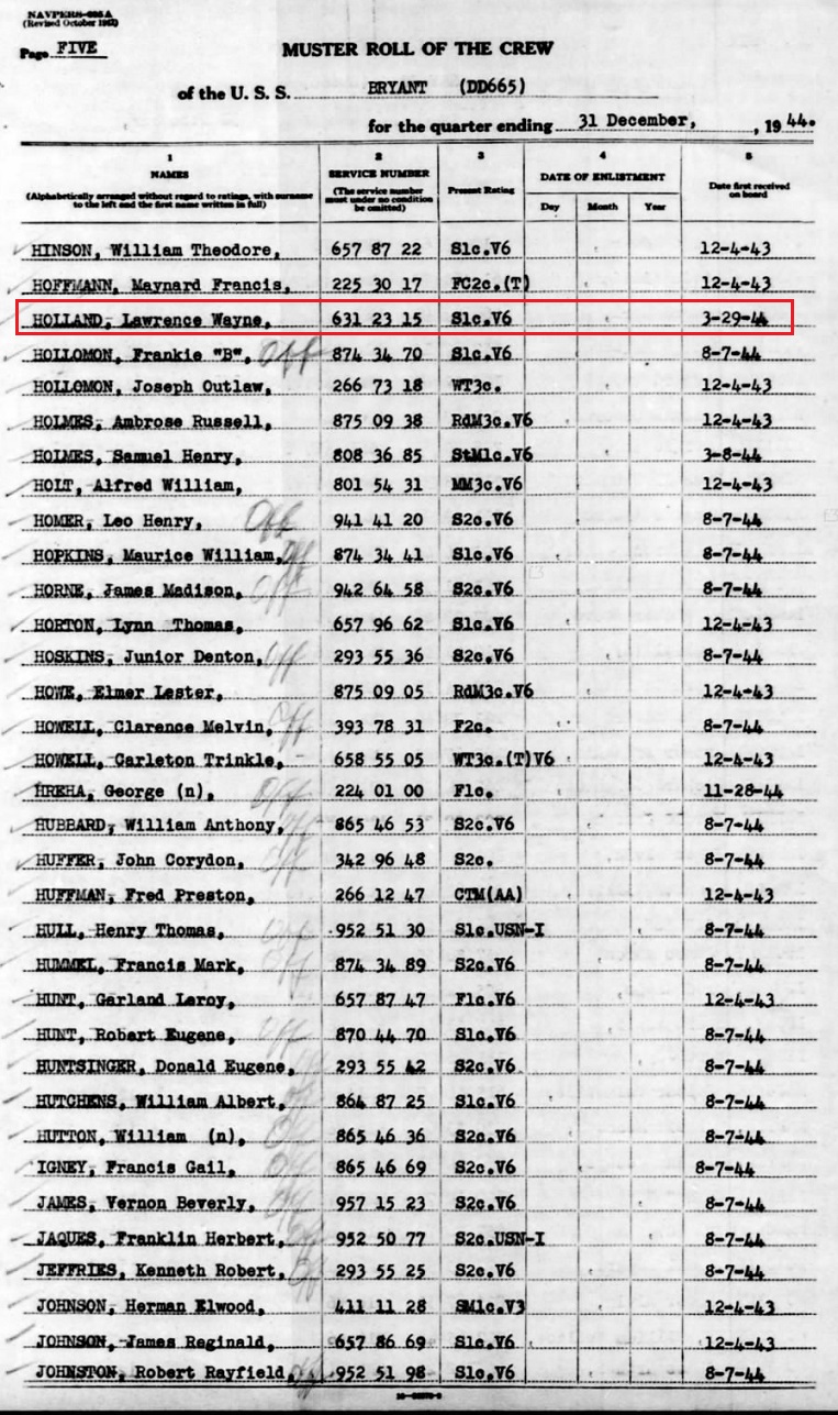 THE STORY of WAYNE HOLLAND in HIS WWII NAVY RECORDS BELOW