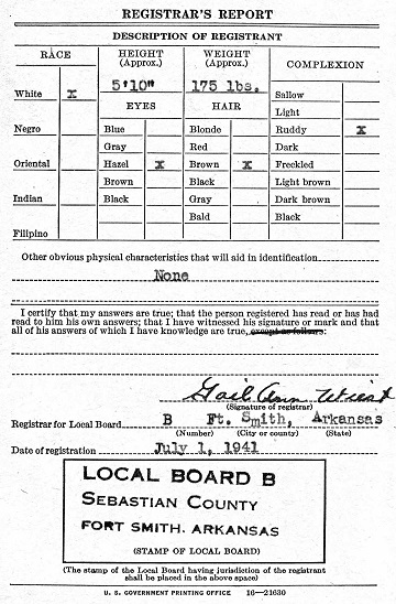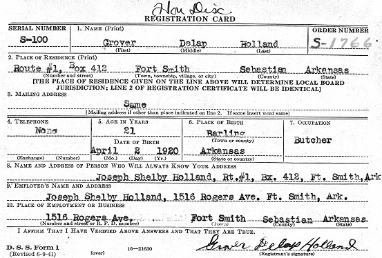 Grover registered for the military draft July 1, 1941 in Fort Smith, Sebastian