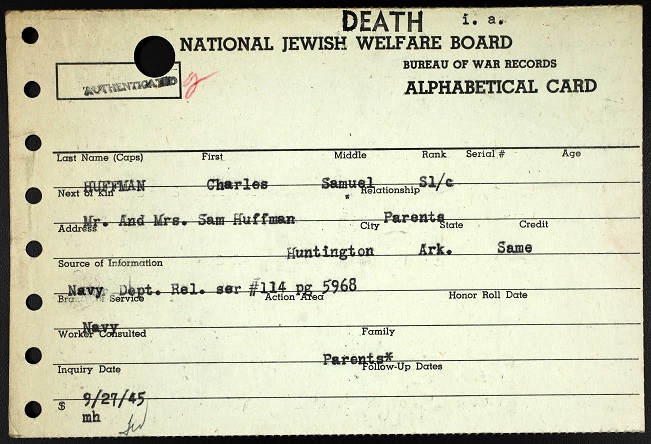 There is little information about his Navy activities. S1c Huffman is found