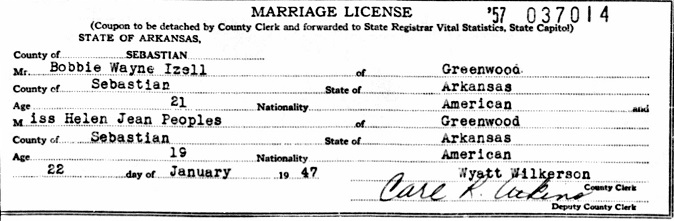 Jesse Cecil & Edith E. Skinner Izell. January 22, 1947 Bobbye married