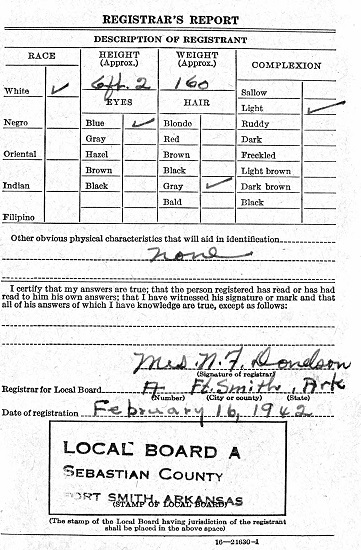 February 16, 1942 Granville registered for the military draft at Fort Smith,