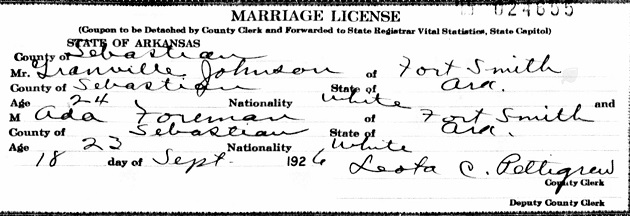 September 18, 1926 GG married Adah Forman in Sebastian Cco., Ar.