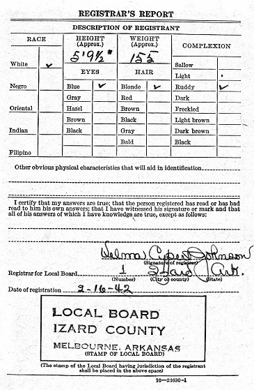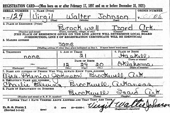 Feb 16, 1942 Virgil filled out his draft card in Izard Co., Ar. He was living at that time