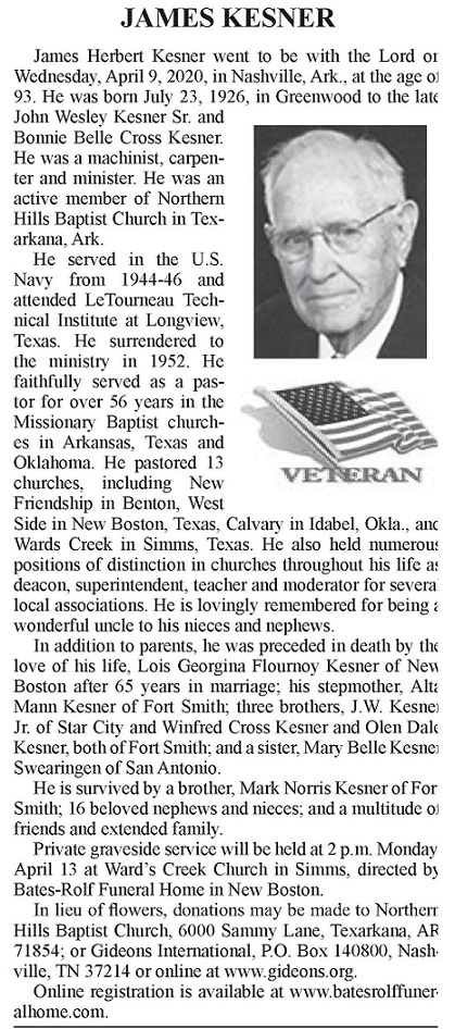 James Herbert Kesner 1926-2020