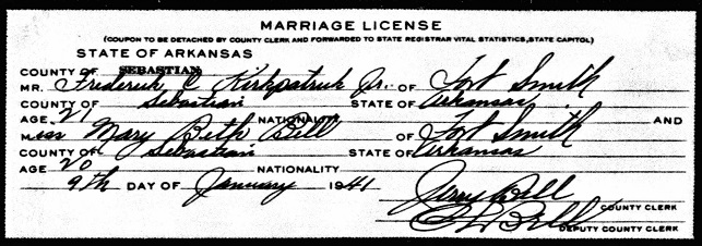 Fredrick Calhoun & Emma Gordon Coke Kirkpatrick. January 12, 1941 he married