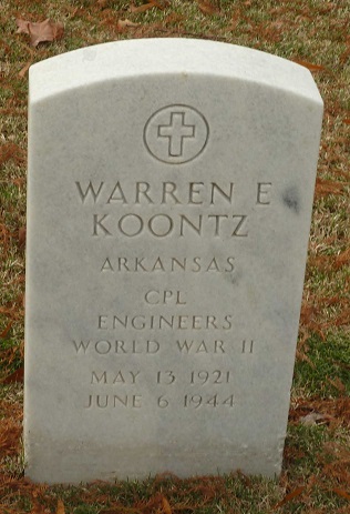 On June 6, 1944 Cpl. Warren E Koontz was killed in Action on Omaha Beach, Normandy, France.