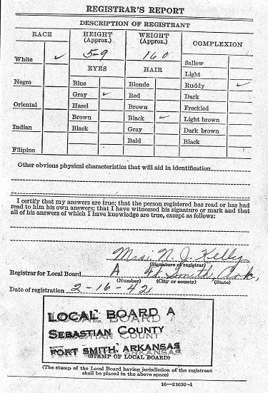 Bill again registered for the draft in Fort Smith, Sebastian Co., Ar.