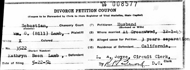 Sebastian Co., Ar. where they both lived. Bill and Kathryn were divorced