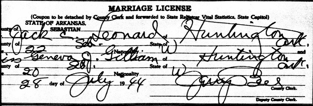 His step-father was Carl Madsen. July 28, 1944 Jack married Geneva J. Gilliam