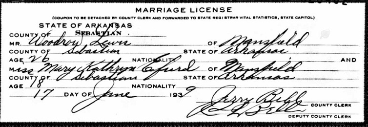 Thomas Charles & Ola Dell Cowan Lewis. Jun 17, 1939 Woodrow married