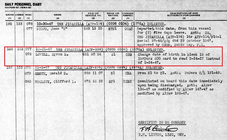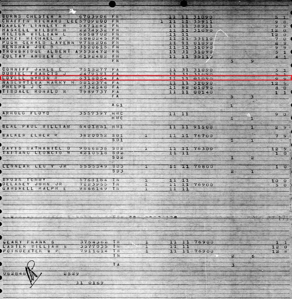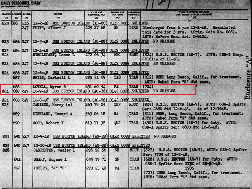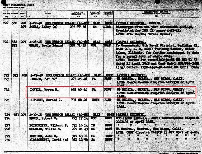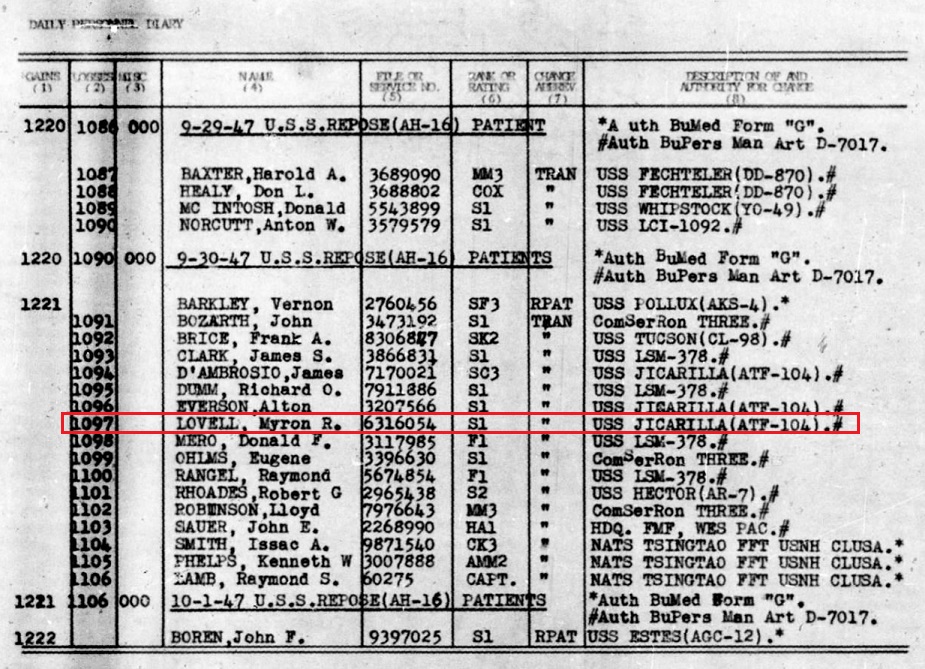 (From the 1st muster from the Jicarilla below it appears he served on the USS Mitchell before Jicarilla.)
