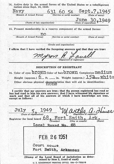 Another date stamped on that card says "Feb 26, 1951 Court House, Fort Smith, Ar." He