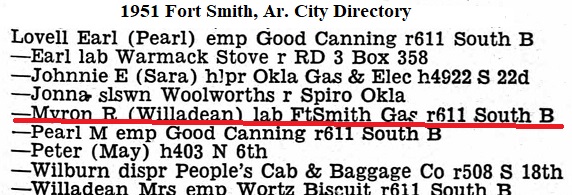 does have a listing as a resident of Fort Smith in 1951 in the Fort Smith City Directory.