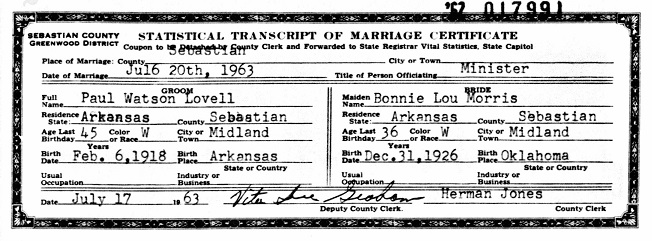 Bonnie Lou Morris, both being residents of Midland, Sebastian Co., Ar.