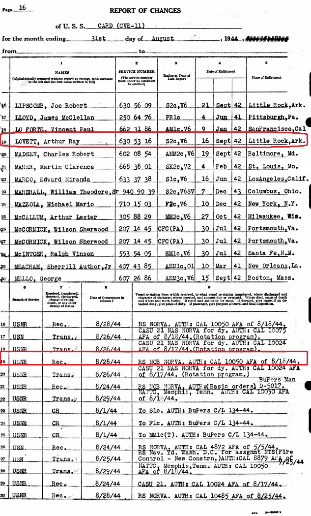 S1c Arthur Raymond Lovett was discharged from the US Navy on