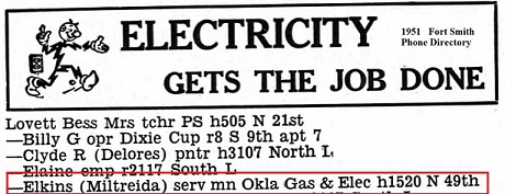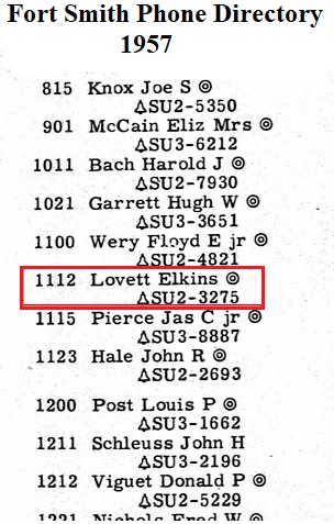 In 1951 and 1957 Elkins can be found in the Fort Smith, Sebastian Co, Ar.