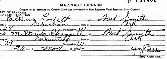 Barto and Eula Perry Lovett. On Sept 1, 1950 Elkins married
