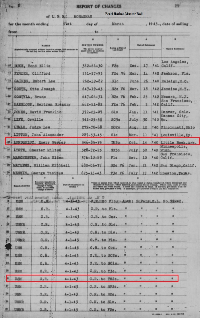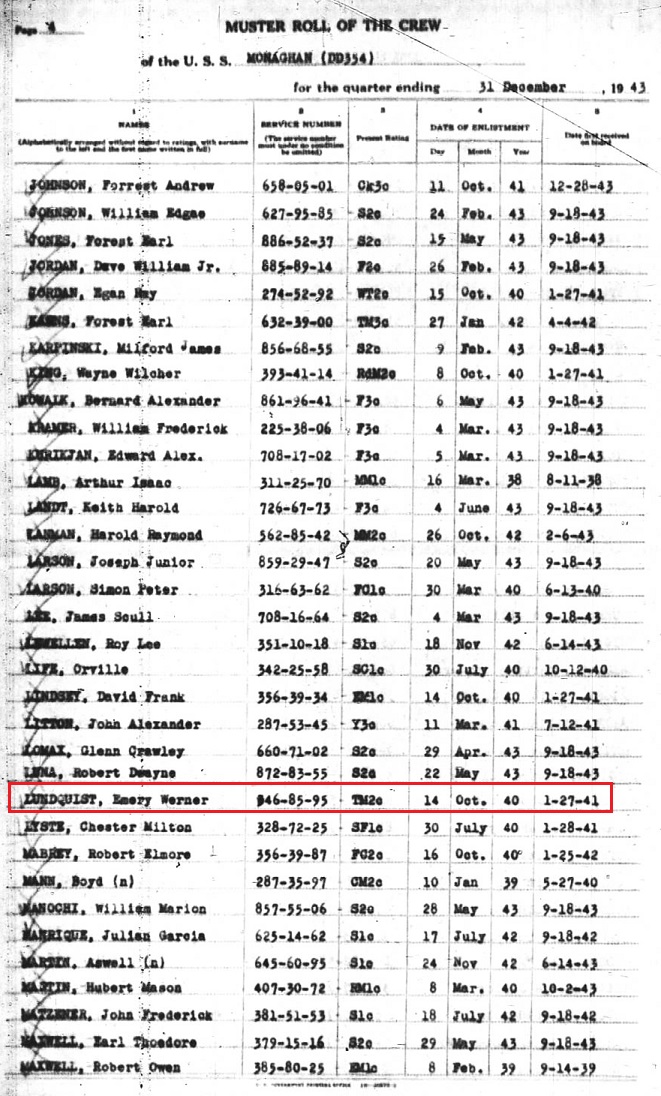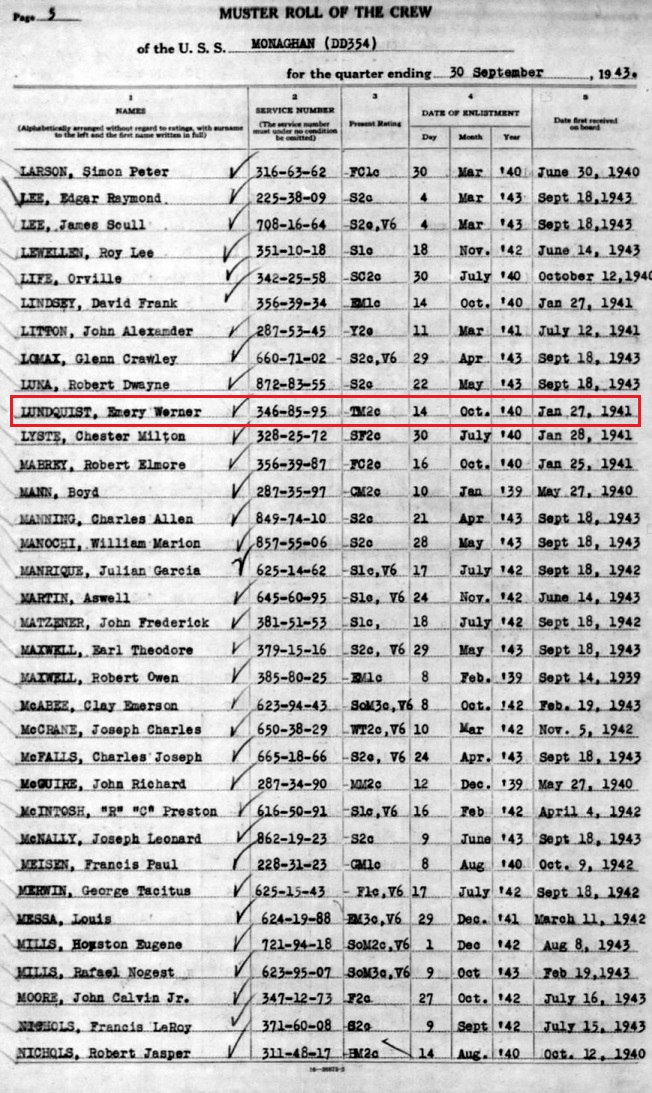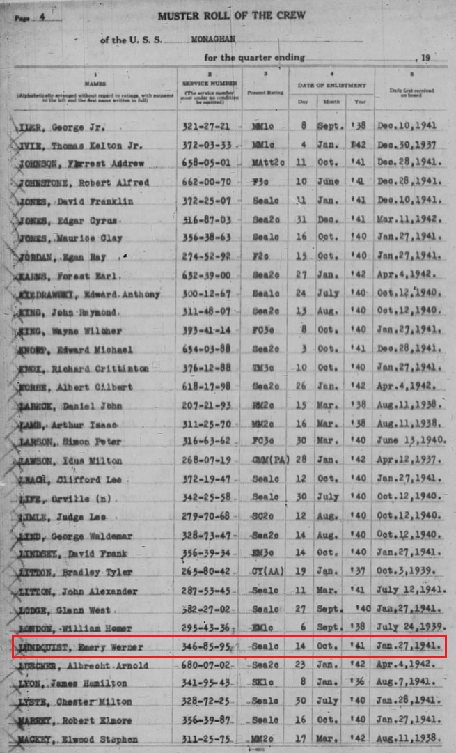 (There is a lot more info on the ship USS Monagham he was on and their battles
