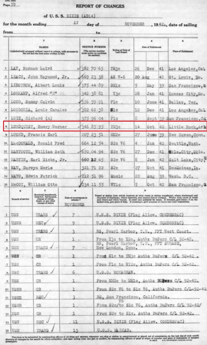 Pearl Harbor survivors that went down with that ship. I'm just fortunate to be transferred.